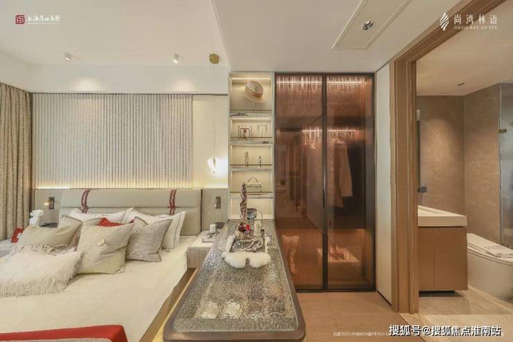 主卧套房更为惊艳,预留超大衣帽空间,卫浴空间,洋溢高品质生活的调性。这些两百平以上大平层才能专享的生活体验,都在尚湾林语降维实现。