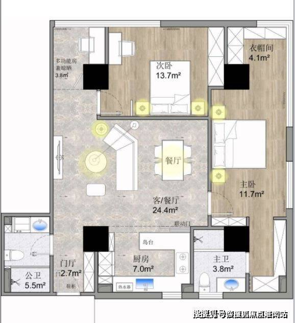精装交付,空间的升级,生活享受的越级,全屋地暖,新风系统配备,享受一家人的小时光,低调而奢华。