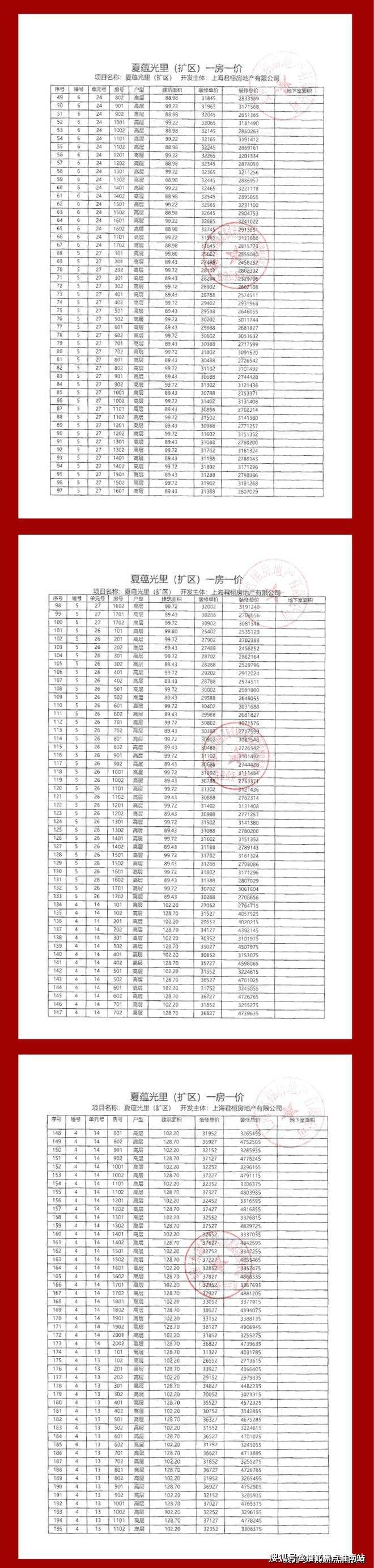 项目一房一价表