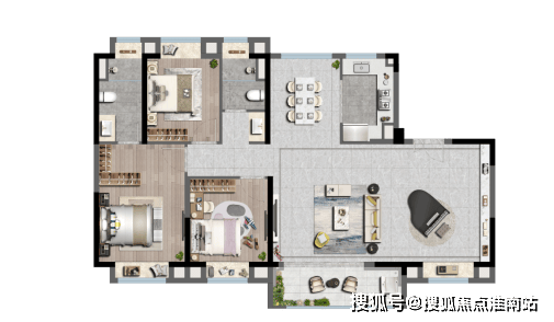 2、空间一体化设计消除客餐厨阳台的空间界限,延展多元生活逸趣
