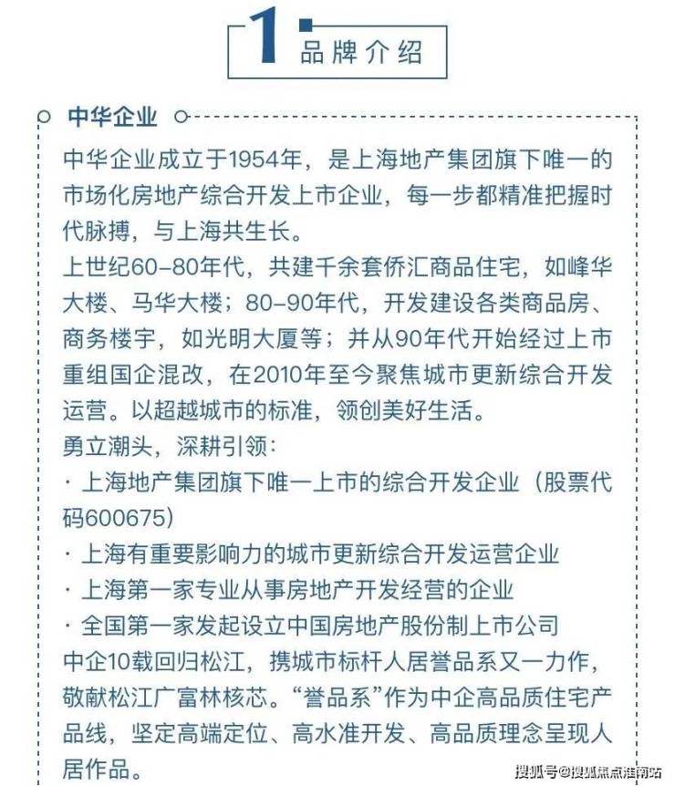 中华企业股份有限公司(以下简称中华企业)成立于1954年4月,是上海解放后经国务院批准设立的首家从事房地产开发经营的国有企业。1993年9月,中华企业公司改制为股份制上市公司(证券代码:600675)。
