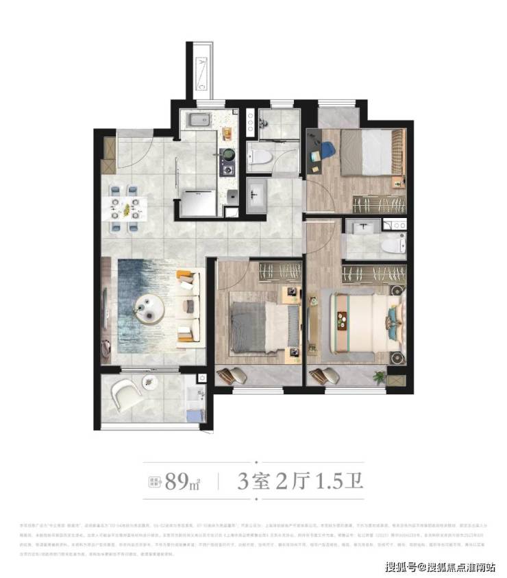 约89㎡3房2厅1卫(92套)
