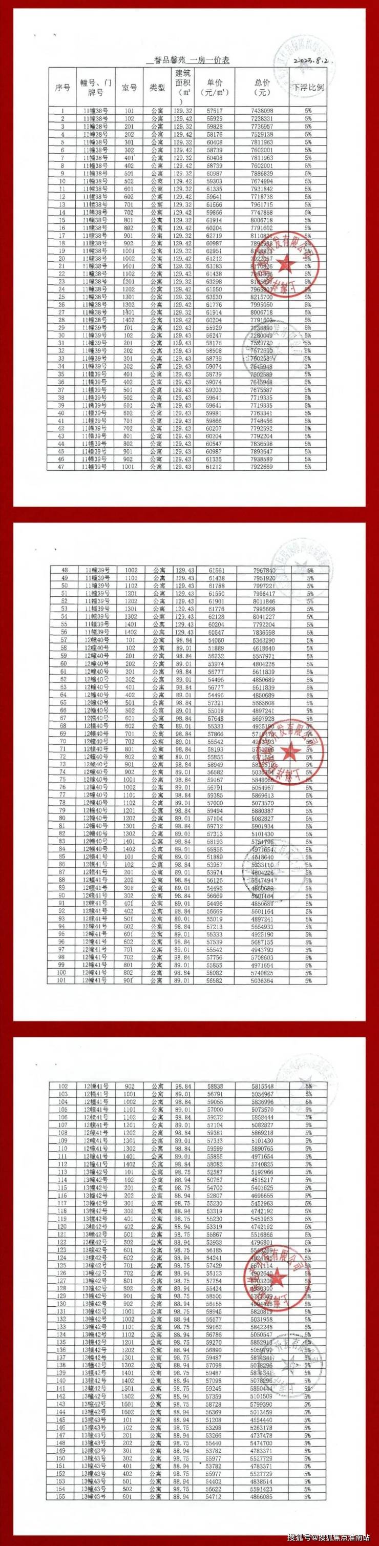 高层首开户型匹配比: