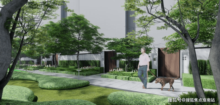 社区内部打造一带、两轴、三核的精致公园谧境:北侧沿河景观绿带;内部贯穿阳光草坪轴、落英缤纷轴;规划“中央绿化核、休闲养心核、公共会客厅”三大功能组团。