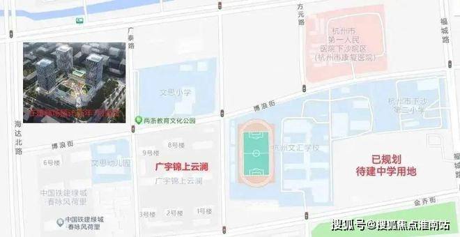 项目与文思幼儿园、文思小学一街之隔,直线距离下沙第二小学约500米,直线距离杭州市下沙中学约800米。这些优质的教育资源为居民的子女提供了良好的学习环境。项目3公里范围内有两家三甲医院:邵逸夫医院下沙院区和浙江省中医院下沙院区,为居民提供了便捷的医疗服务。
