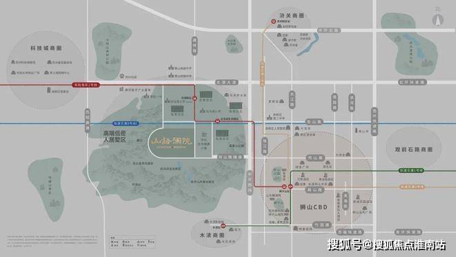 项目所处板块在地理位置上处于高新区中心位置,东有狮山核心CBD西有科技城,共享两个区域优质配套。以周边山水自然风光为基础,何山隧道为纽带,连通进一步项目与狮山片区。实现自然风光 — 项目 — 都市生活链条,构建多元生活场景。