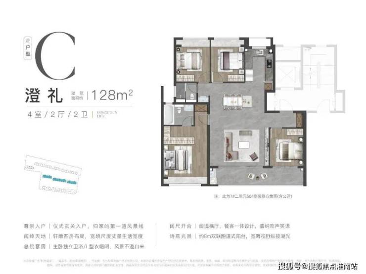 该户型和112㎡布局类似,但客厅餐厅更大,南向还有约8m双联大阳台,舒适度更高。