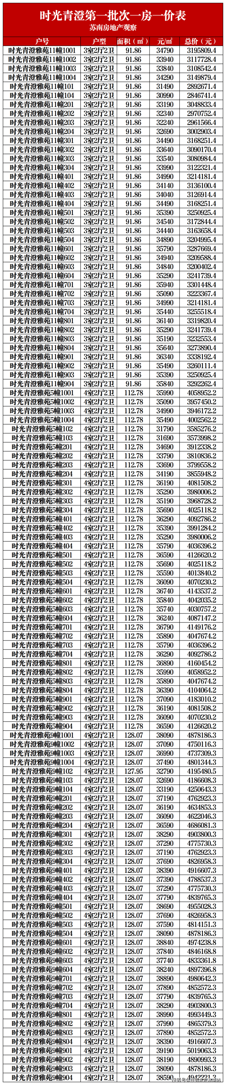 一房一价表如下,建议收藏