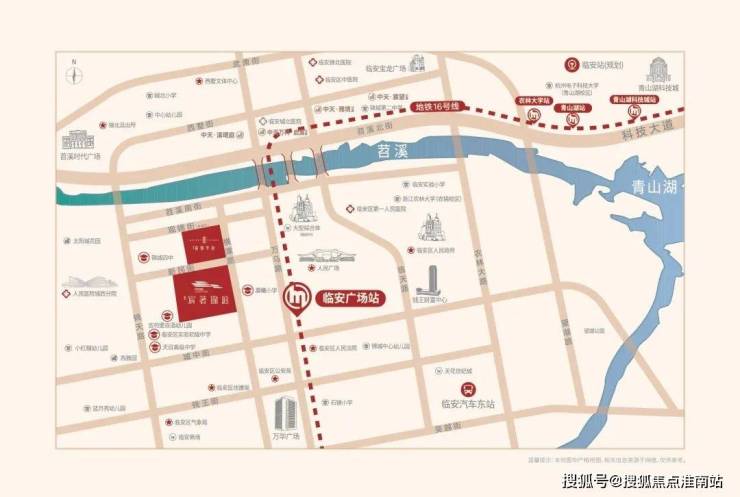 16号线“临安人民广场站”(直线距离约500米);10站即达未来科技城,绿汀路站,换乘5/3号线,接驳杭州主城交通圈
