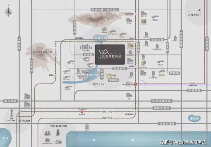 项目近邻地铁9号线南苑站、临平站,快速畅达临平南站,同时便捷接入东湖高架、秋石高架等四横三纵路网。未来当地铁9号线与高铁穿越繁华,奔驰而来,临平与杭州实现无缝连接,一座开放式的超级TOD生活枢纽在此形成。