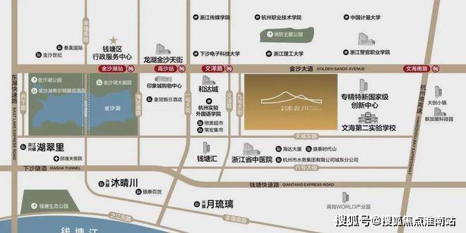 沐云川项目位于浙江理工大学南侧,距离文泽路地铁口仅约200米,东侧一路之隔即为钱塘区最好的杭州第一梯队名校——文海第二实验学校。