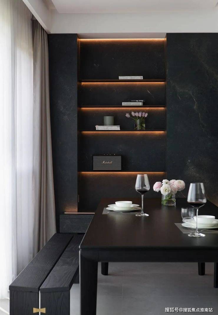 黑色,是一个很难用一面来表述的颜色,冷酷疏离却也让人感觉归宿与安心,沉稳大气但有时也散发出慵懒随性,强烈的抽象表现力超越了任何色彩体现的深度,再配合灰色的过渡和蔓延,整个空间显得细腻而富含质感。