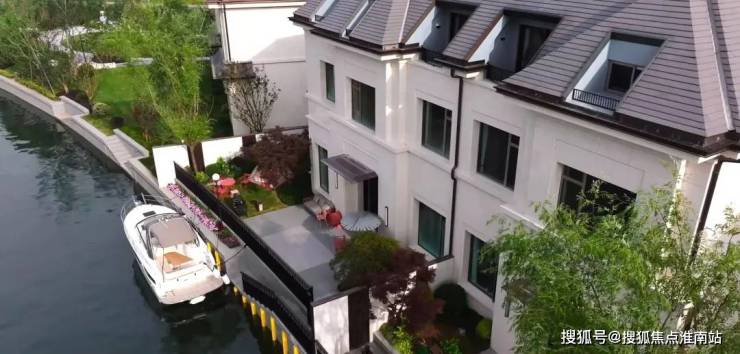 每一排别墅前都有一条渠道,引入水系,可!以!停!游!艇!