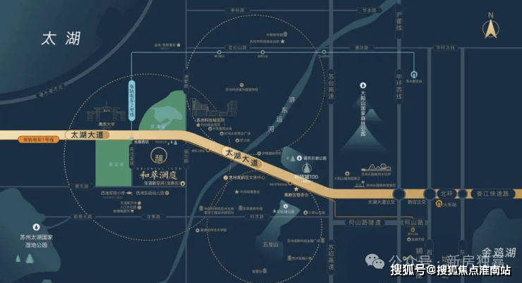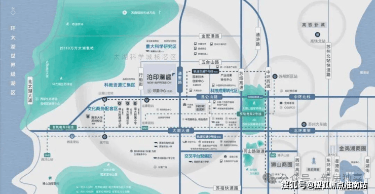 同时和萃澜庭位于苏州高新区科技城核心位置,向东1km为科技城文体中心、2km为科技城核心区TOD项目,向西1.5km为南大苏州校区