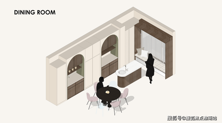 厨餐厅,设计师以“过去、现在、未来”的生活场景设计功能和动线,空间不是恒定的,而是可流动的。
