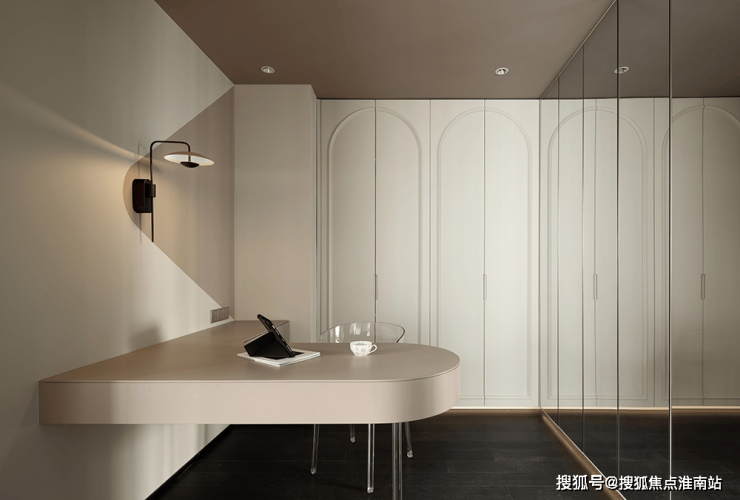 柜体隐形门,利用视觉上材质统一性,让空间不再片面化,通透明亮空间将精致的现代生活完美诠释。