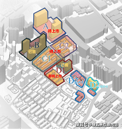 项目整体分为6个地块,即A、B、C1、C2、D1和 D2。