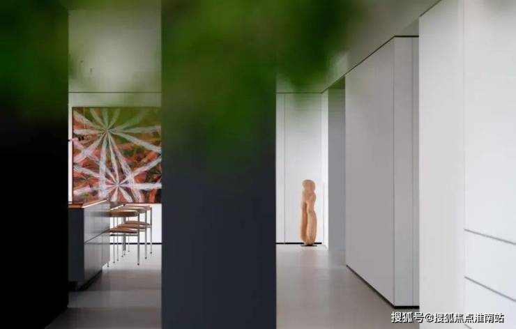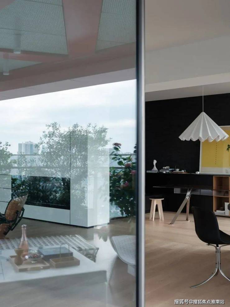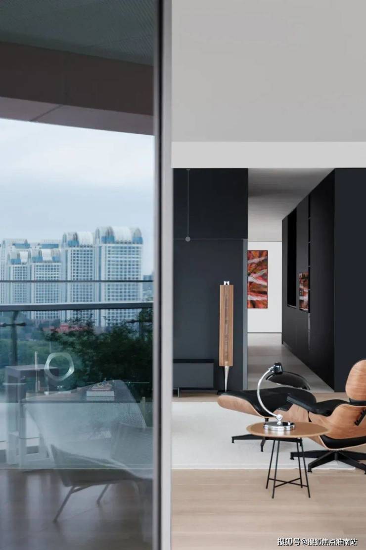 入户之后便可以直面观赏宽阔的河景风景,也可以通过“时光长廊”移步到卧室或者茶室。
