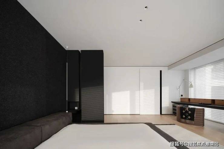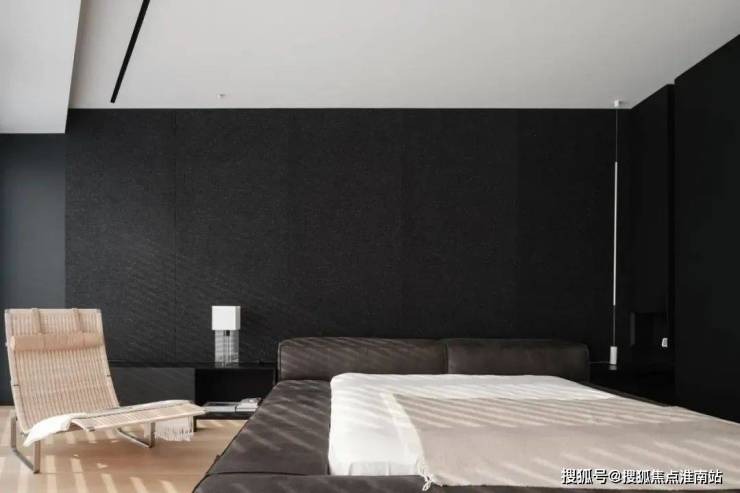 卧室以黑白基调为主,巧妙地构建了空间的基底。经过精心策划的软装搭配,这个空间在保持其独特格调的同时,也悄然间散发出温暖的氛围。