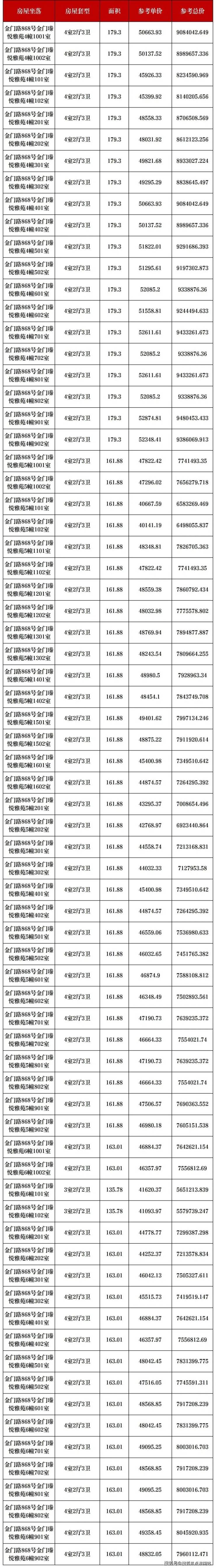 参考价格:均价 46173.78 元 /㎡,单价区间 36882.76-52951.66 元 /㎡,总价区间 444 万 - 950 万元