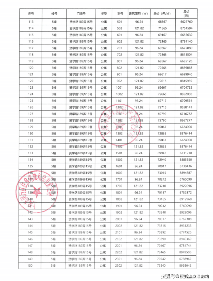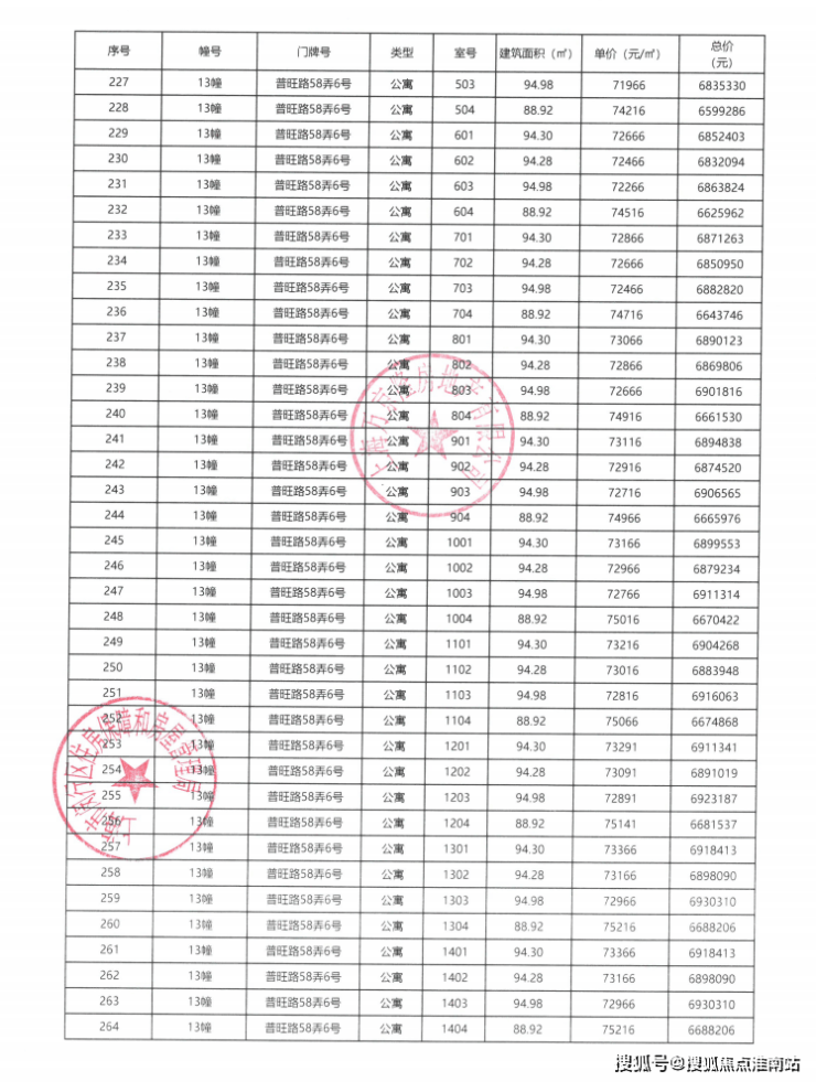 一房一价表