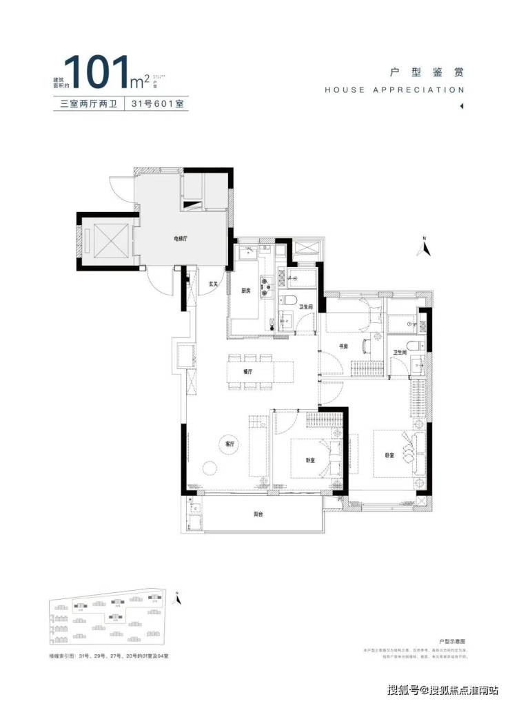 101平(3房2厅2卫): 464-534万