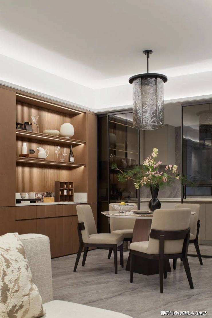 整个餐厅可以放下一整个中式圆桌,这一点对于二胎甚至三胎家庭来说实在太重要了,能承载一个大家庭的天伦之乐。