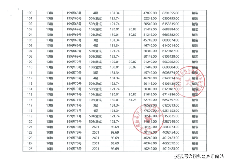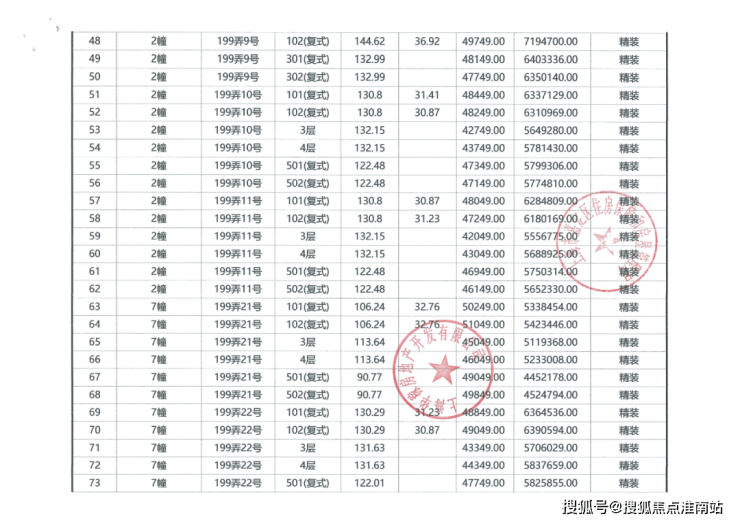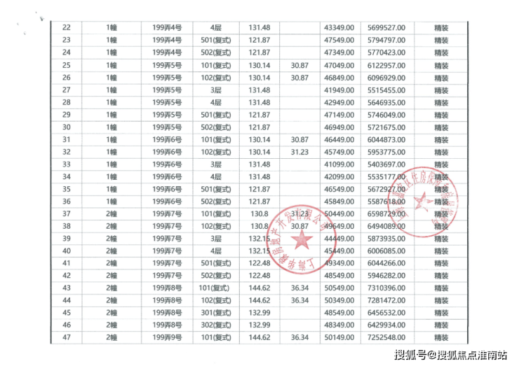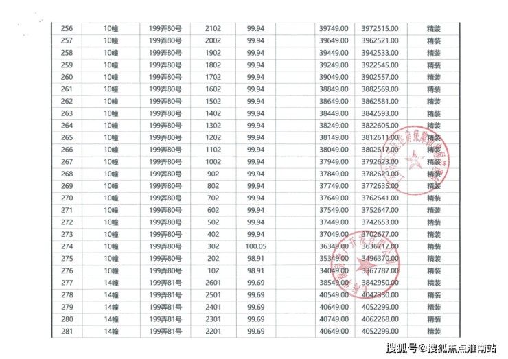项目一房一价表