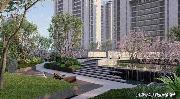 社区内Y型黄金水道已实景呈现,围绕滨河打造下沉式客厅,将会客与赏景衔接,延伸家庭居住空间。