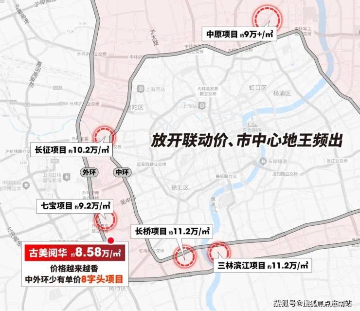且现在趋势就是联动价放开,市中心曹家渡、徐汇滨江接连出现地王,未来外环内新房价格会越来越高,古美阅华约8.58万/㎡的含金量显而易见。