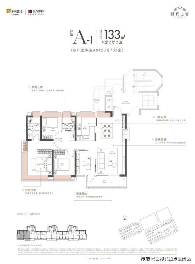 项目小高层主力户型为建面约109㎡3房、133㎡4房。