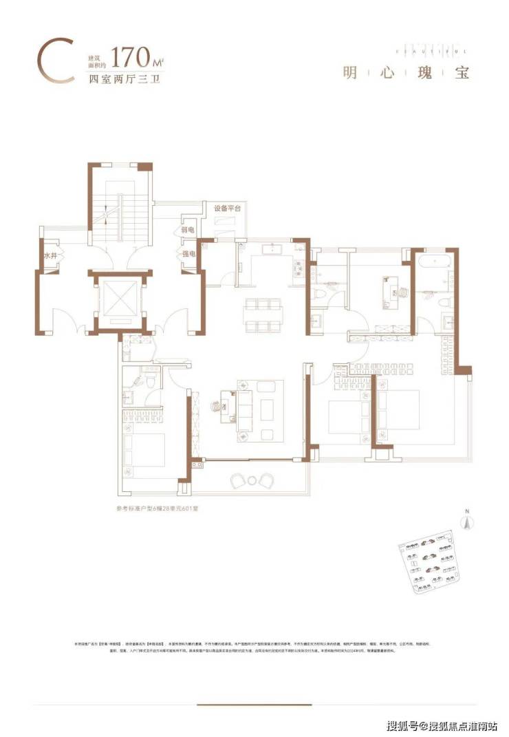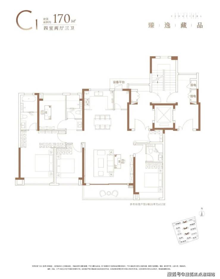 建面约170㎡四房两厅三卫,做到了罕见的奢侈大户型,是真正的终极改善产品。