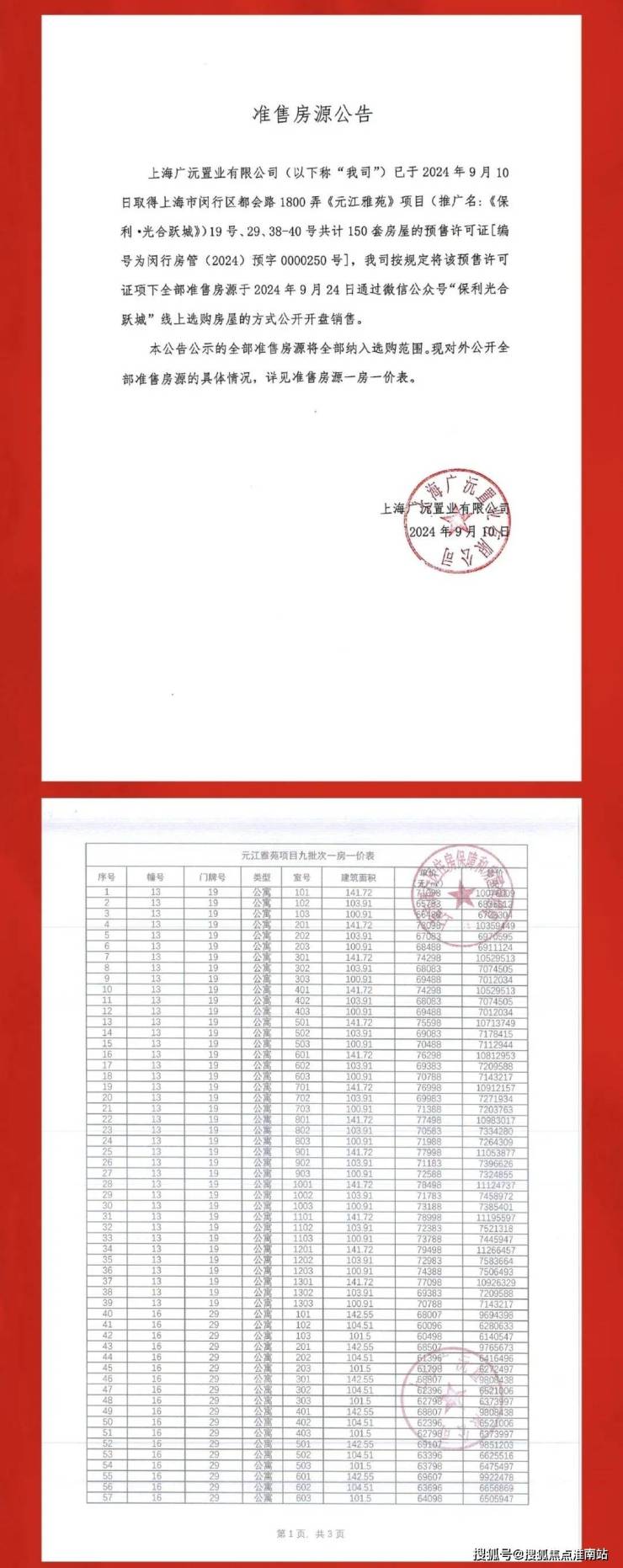 一房一价表: