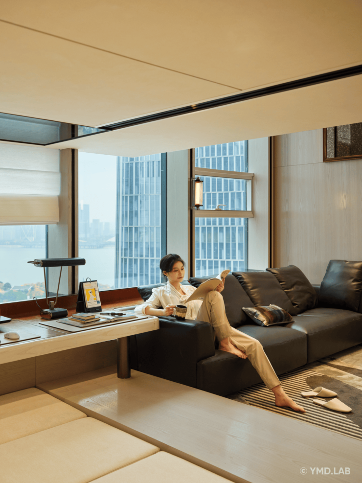 巨大的玻璃幕墙,如同永不落幕的IMAX巨幕,将钱塘江的潮汐、奥体璀璨的天际线,实时放映为专属于你的城市电影。景致随心境流转,于此,静谧与辽阔达成美妙的共生。