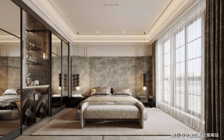 衣帽间、梳妆台、2米大床甚至是浴缸,都可以轻松容纳,再加上超大落地窗的设计,居住舒适度直接拉满!
