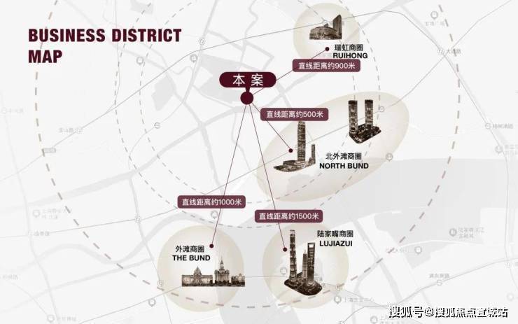 商业配套方面: 项目约2公里内,多元繁华构筑封面商业圈:北外滩商圈直线距离约500米,外滩商圈直线距离约1000米,陆家嘴商圈直线距离约1500米,瑞虹商圈直线距离约900米。