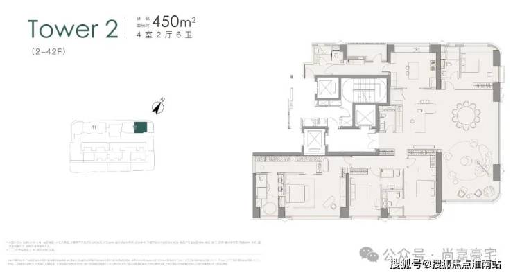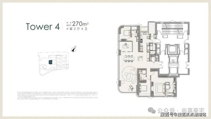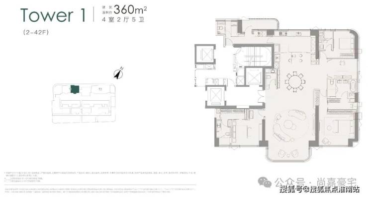 作为本次推售中均价至优的藏品(约19万/㎡),该户型以“分层定制”诠释居住巧思:31层以上采用端厅形制——借高差突破西侧楼栋遮挡,西、南向景观界面完全舒展,悬挑式阳台直揽三件套天际线,是项目内除T2 450㎡外罕有的高区端厅作品,“顶阶视野+亲民总价”的组合,成就板块内稀缺的性价比藏品;2-29楼则以飞机型格局铺排空间,南向中轴客厅串联两侧卧室,外拓270°环幕阳台,让采光与观景的大宅体验不受楼层所限。
