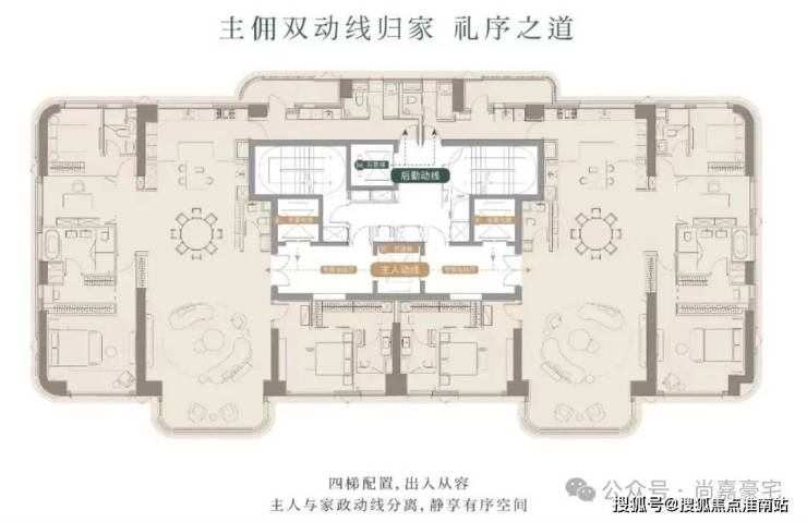 独立后勤动线与电梯厅设计,保障居住私密性与仪式感。+1灵动空间可自由改造为书房、茶室或衣帽间,满足多元生活需求。通透格局搭配观景飘窗,让阳光与风景自然入户,演绎从容有度的居家生活。