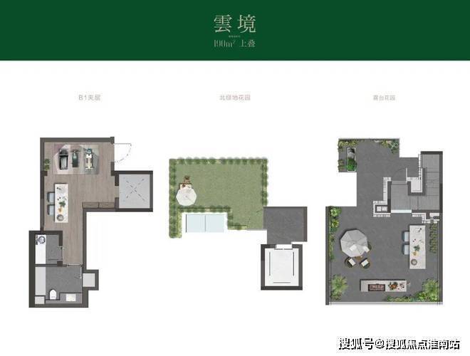 上叠从北绿地花园入户,经私家电梯直接进入3层或4层室内空间,或进入B1夹层地下室。