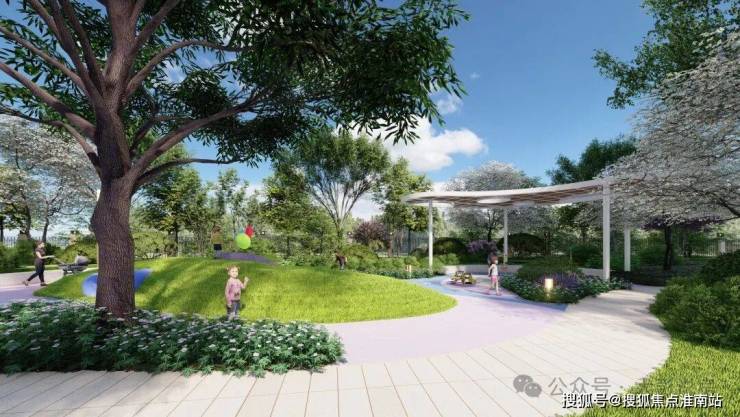 以自然会客厅为核心主景,融入艺术廊架、阳光大草坪、泛会所架空层、健康跑道、儿童乐园等功能场地