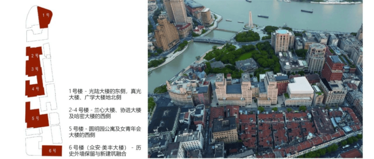 著名戴卫奇普菲尔德建筑事务所(DCA)担纲项目内的11栋历史保护建筑及众安·美丰大楼的修缮与整体设计。