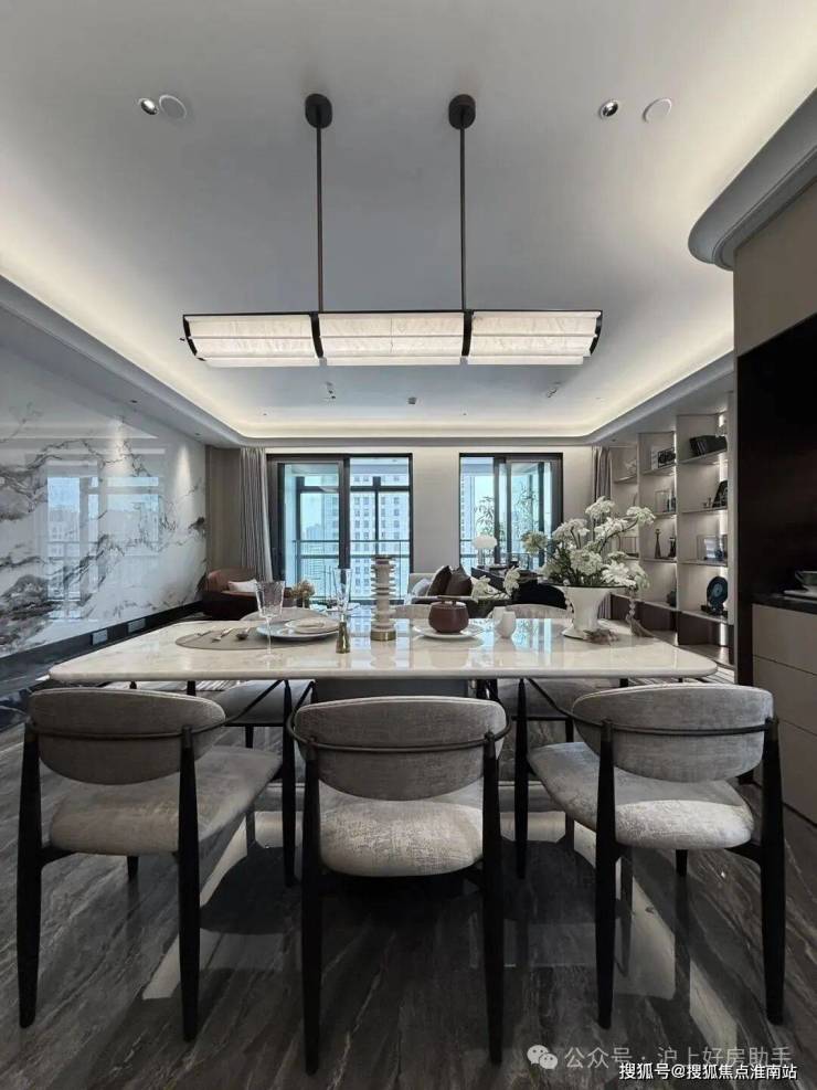 翎翠滨江通过大量的奢石、隐藏式细节将整个室内打造成了艺术的殿堂。