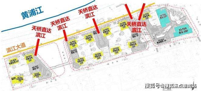 所有住宅楼栋都通过约9-22米的巨柱架空设计进行了抬高,楼栋悬浮在黄浦江畔,让每一户都能最大化地享受到临江视野和景观绿化,惬意滨江生活感满满。