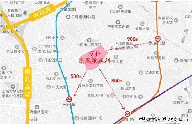 项目距离轨交8号线中兴路站仅500m,两站路即可到达人民广场 ;距离4号线宝山路站约800m,3号线东宝兴路站900米,项目1km距离内拥有3条轨交环绕,出行非常便捷。