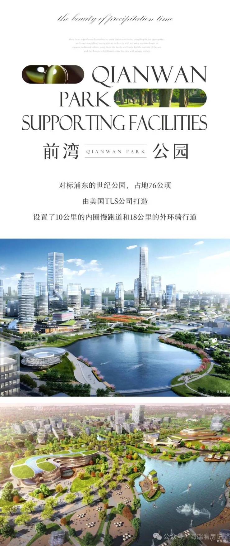 虹桥前湾核心区唯一顶奢现房大平层,仅22席低密纯居住社区;毗邻76公顷前湾公园,内部打造“一核两轴多组团”景观;3500亩前湾公园在建,生态宜居;配2000㎡高端会所,含恒温泳池、健身房等。