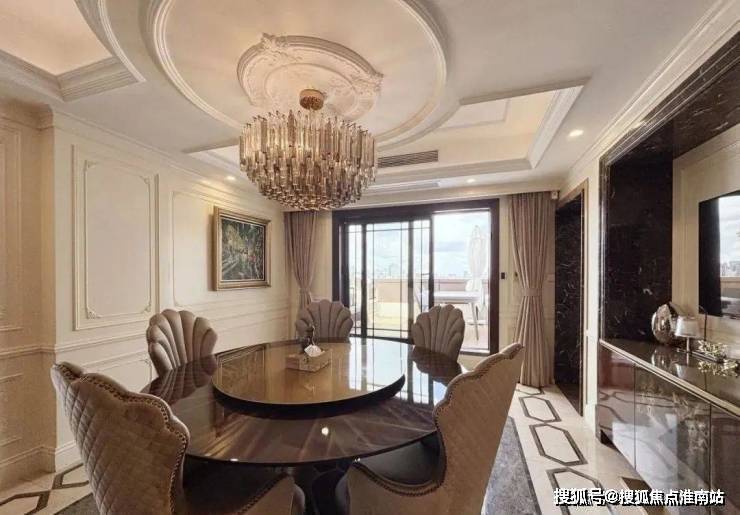 朝南开间搭配大平层露台风景,在餐厅依然可以享受露台上延伸出去的风景;岛台与封闭厨房形成了中西厨一体的格局,宽敞的空间与窗外怡人的风景,令日常烹饪也多了几分灵动意趣。