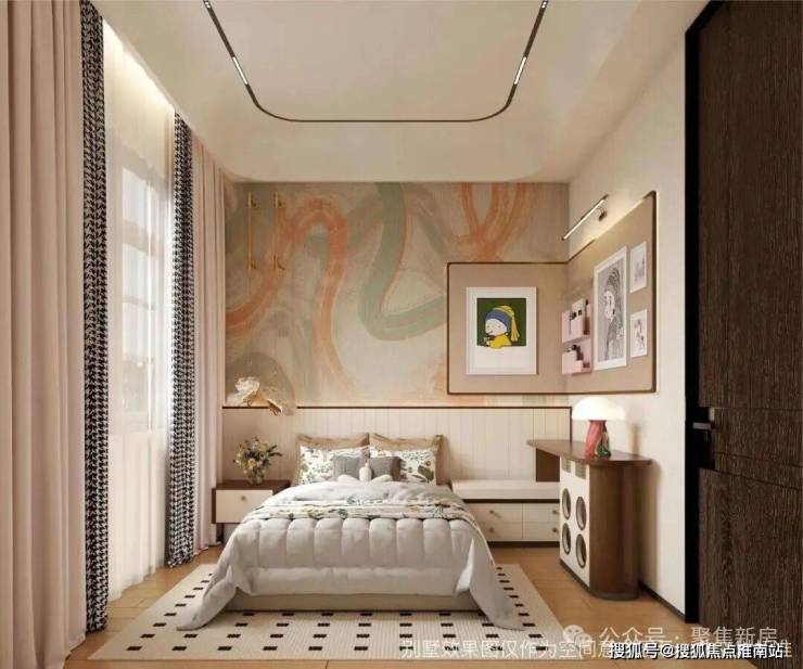 二层是专属于家人的私密港湾,南向卧室分置两侧,儿童房与老人房相邻却不干扰,孩子的拼图与绘本藏在走廊转角,老人的藤椅与茶盏安在另一侧窗下,推窗便是社区园林的绿意,连呼吸都带着草木香.自带衣帽空间,清晨阳光斜照进衣柜,连选衣服都成了享受.