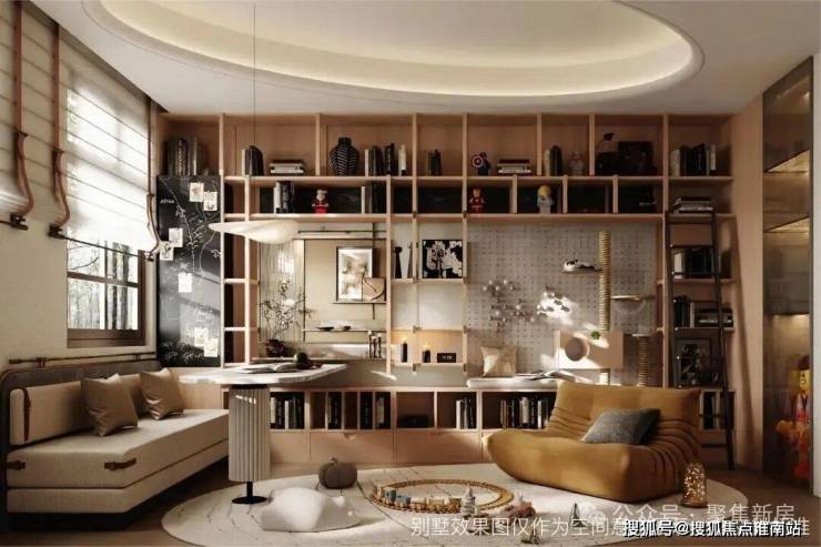 更妙的是配备两个采光天窗的地下空间.若想打造家庭影院,只需在靠墙位置定制一组嵌入式幕布,搭配环绕音响;若想变身书房,就摆上一张胡桃木书桌;若想做茶室,做一组茶柜陈列收藏的紫砂壶,摆一张矮脚茶桌配几把竹编椅,听水沸的声音,连茶香都沾着天窗漏下的光.