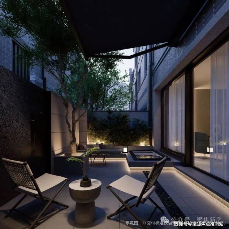1F社交主场:约5.6米阔厅连接16㎡私家庭院,前庭后院,都是社交与生活的主场.