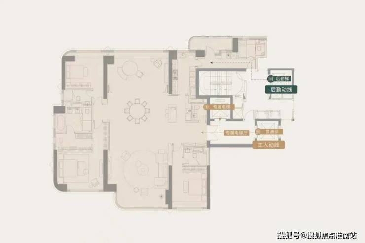 户型设计方面,客餐厅约132㎡的南北通厅尺度,不仅碾压往期近似面积段户型,更以可变形5房的灵活性,直面多代居家庭、精英社交、私人会所等多元场景。